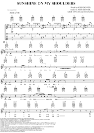 Free printable and easy chords for song by john denver sunshine on my shoulders. Sunshine on my shoulders by john denver mike taylor dick kniss key signature. Learn to play guitar by chord tabs using chord diagrams transpose the key watch video lessons and much more. Capo 3rd fret chorus g c g c g c g c sunshine on my shoulders makes me.